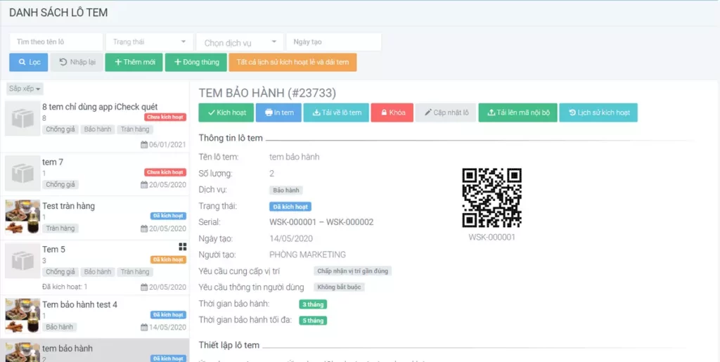 Quản lý tem và hệ thống bảo hành toàn diện