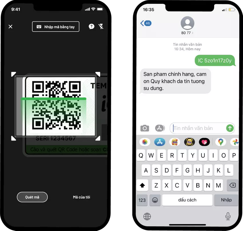 Mã tin nhắn xác thực hàng chính hãng, giúp người dùng không có smartphone cũng có thể kiểm tra sản phẩm.